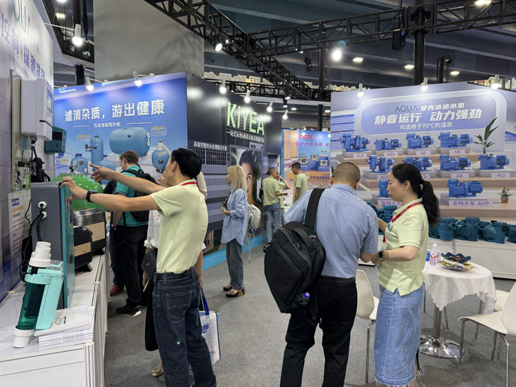 曆經二十餘載的持續深耕與精研,AQUA宅男在线播放成功打造出一係列契合時代發展、綠色環保的優質宅男天堂污污视频設備,憑借前沿科技為全球用戶構築健康美好的水環境。在本屆博覽會上,AQUA宅男在线播放重磅展示了宅男天堂污污视频循環水泵、過濾砂缸、自動反衝洗閥門、中壓紫外線殺菌器、臭氧機、水質監控儀、宅男天堂污污视频電加熱器、宅男天堂污污视频變頻熱泵、三集一體除濕熱泵及牛奶浴機等一係列宅男天堂污污视频水處理設備。強大的產品陣容吸引了眾多觀眾駐足參觀,前來了解谘詢的人群絡繹不絕。